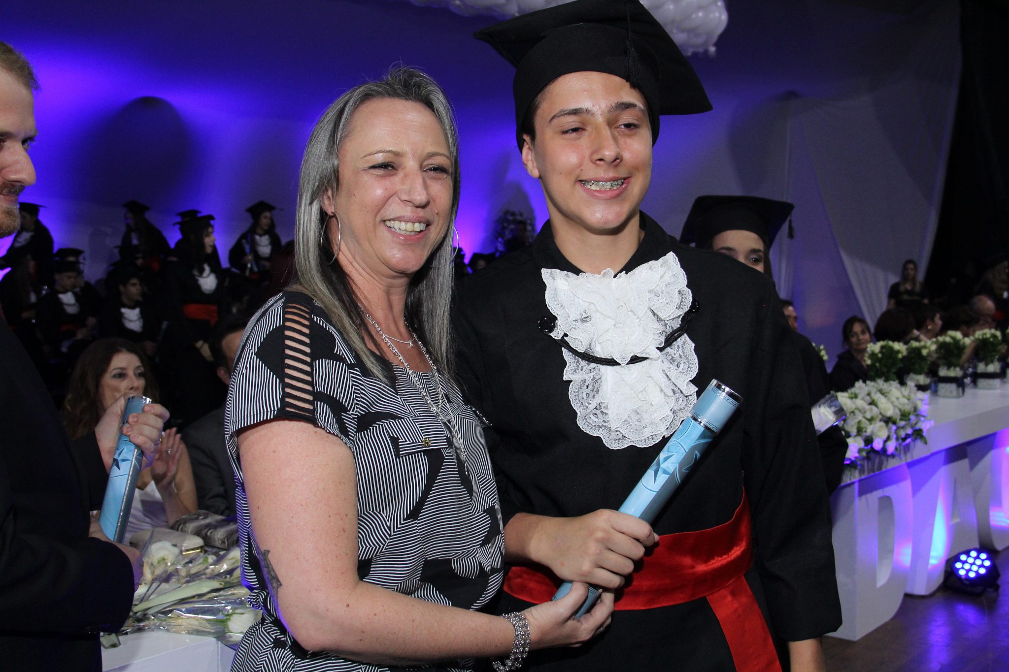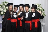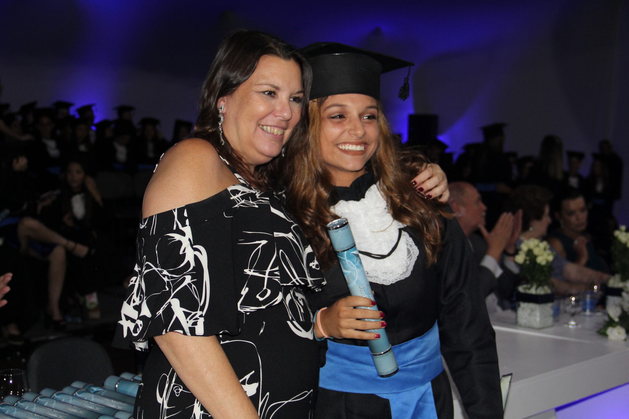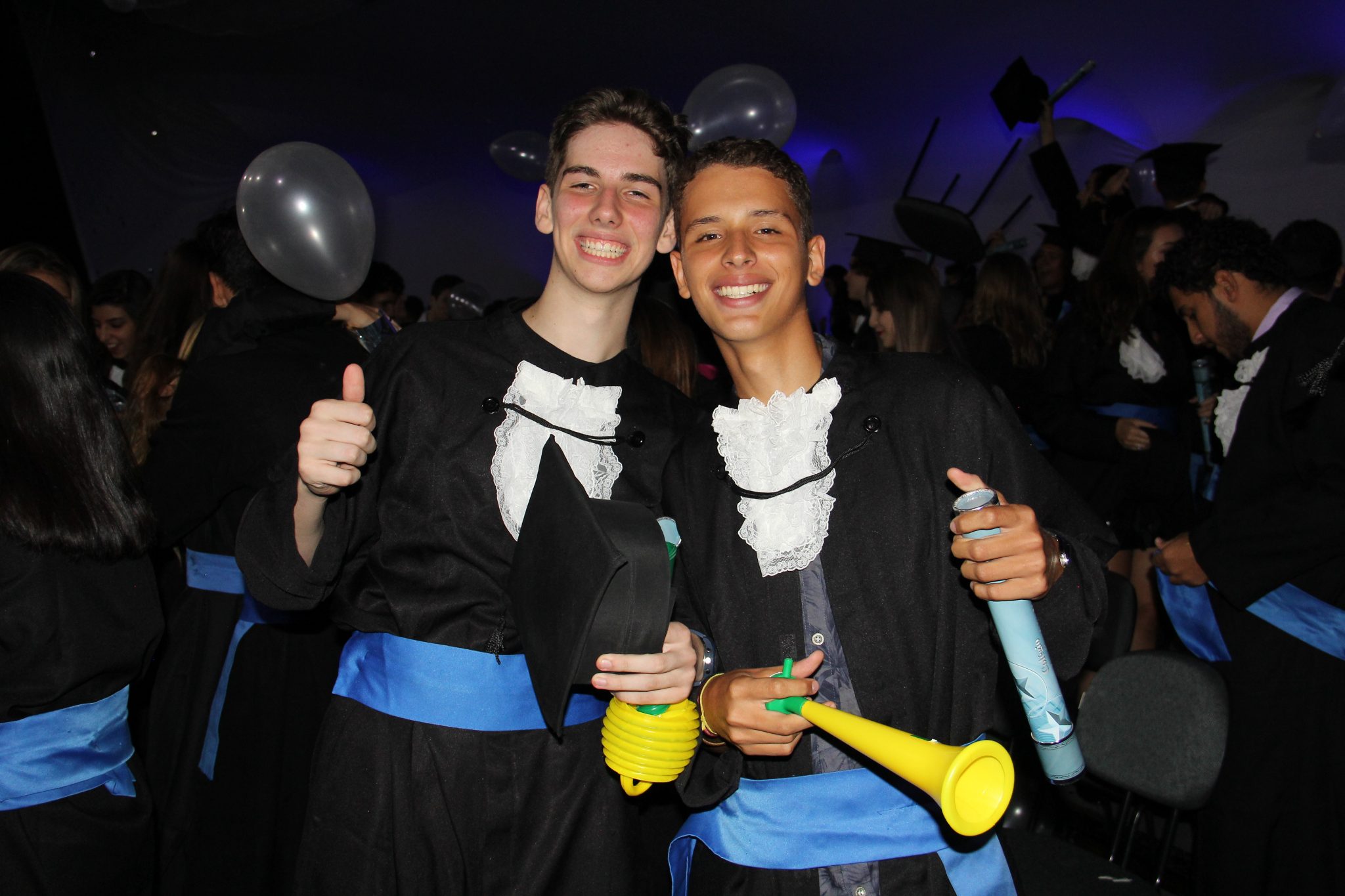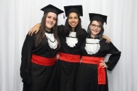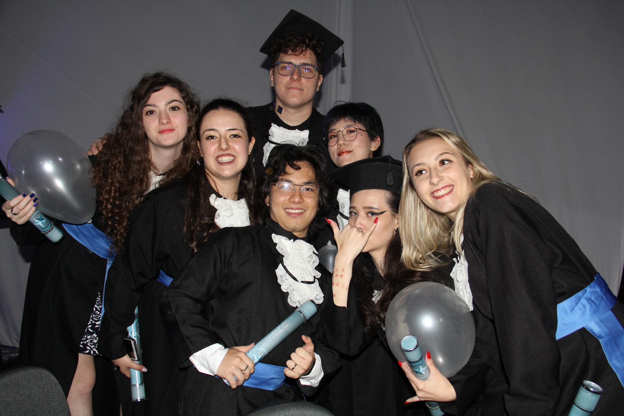 Ao término das solenidades, uma chuva de balões brancos, capelos jogados para cima, abraços e muita alegria! Parabéns, formandos!