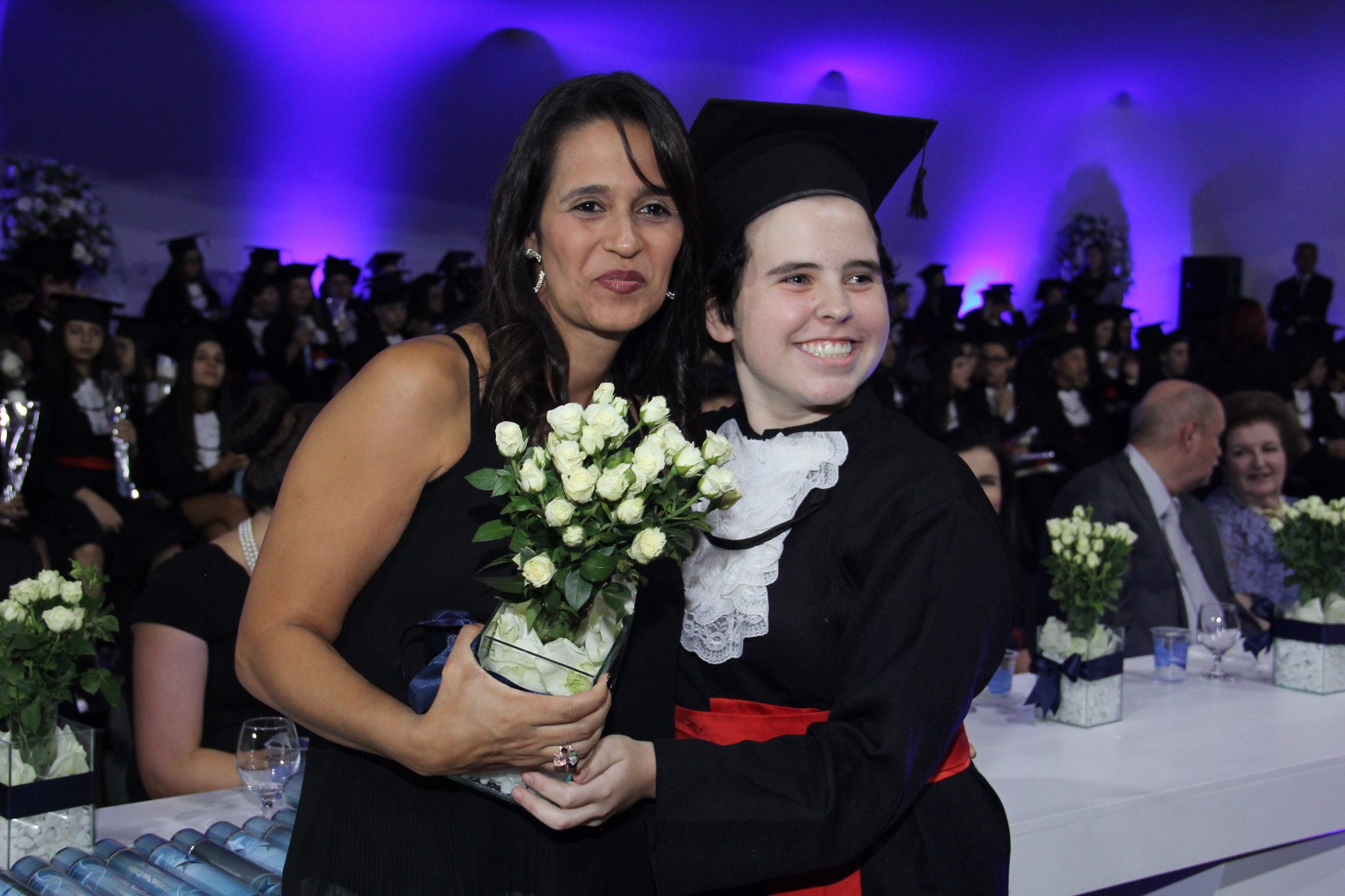 A música se fez presente desde a porta de entrada dos convidados: um piano de meia cauda recepcionava a todos anunciando a grandiosidade da celebração que estava por vir. Ao longo da solenidade, mais uma vez as canções chamaram a atenção, marcando cada item, principalmente em homenagem aos professores e pais. A responsável por isso foi Laura Wogan, cantora que levou para acompanhá-la quatro instrumentos: teclado, violão, violoncelo e bateria.