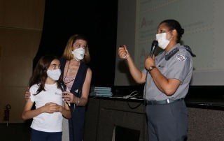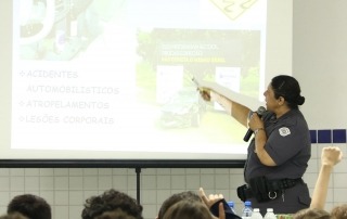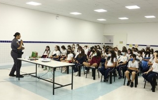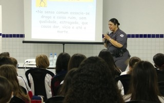Em duas datas diferentes, as instrutoras Andréia Aparecida de Carvalho e Rosimeire Dedino, policiais da Polícia Militar fardadas, apresentaram dicas valiosas sobre como resistir às pressões de desconhecidos e amigos mal-intencionados sobre o consumo de álcool, cigarro e outras drogas. Esses encontros foram realizados nos meses de novembro e dezembro nas unidades Cataguases e Cantareira.